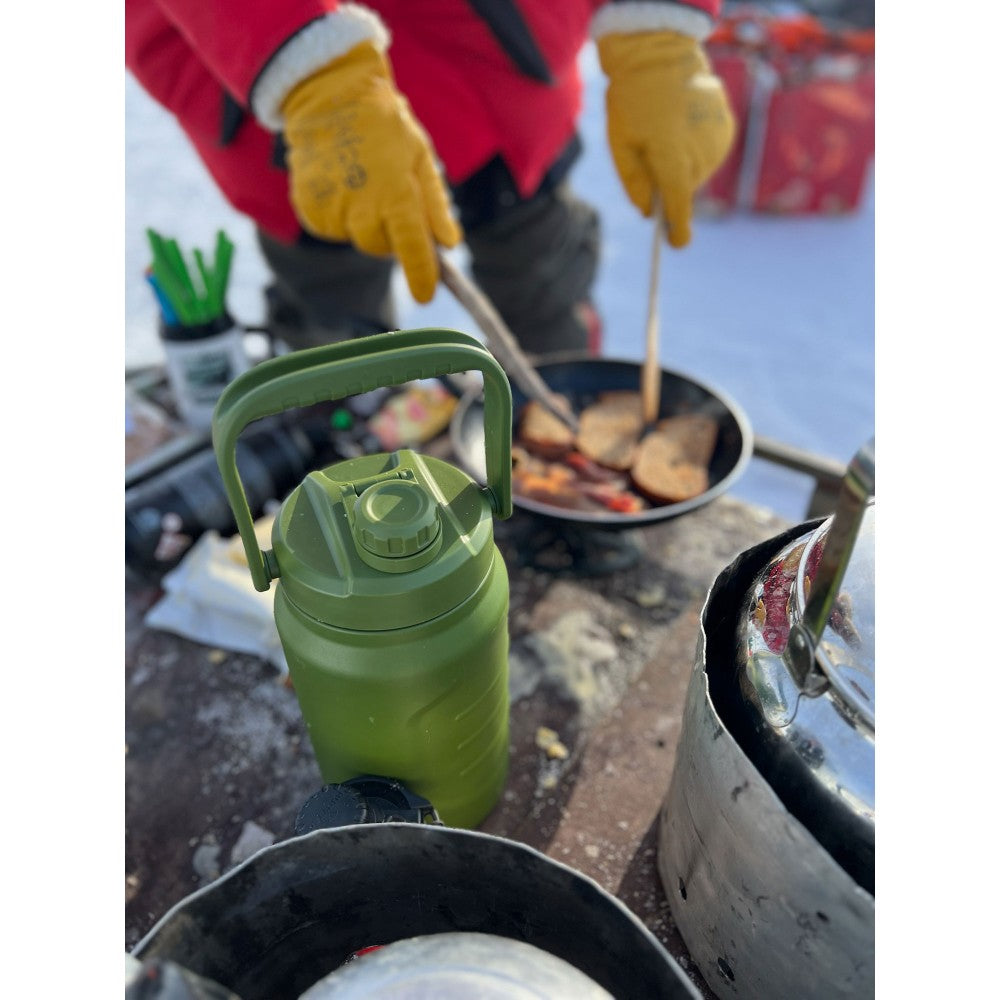 Puikus kompanionas grupių išvykoms, transportavimui, laikymui ir bet kuriuo atveju, kai reikia didesnio kiekio vandens, kavos ar arbatos, kad gėrimai ilgiau išliktų karšti arba šaltai. Tvirtas Superjug (2,5 l) pagamintas iš itin tvirto, aukštos kokybės 18/8 nerūdijančio plieno ir turi dvigubo sluoksnio vakuuminę izoliaciją, kuri ilgiau palaiko gėrimus karštus arba šaltus. Plati anga leidžia lengvai pripildyti ir valyti, o didelis izoliuotas dangtis su ergonomišku, nepraleidžiančiu sukamu dangteliu užtikrina patogų pylimą ar gėrimo vartojimą. Lankstoma nešiojimo rankena ir neslystantis paviršius suteikia patogų transportavimą – kur bebūtumėte. Puiki alternatyva kelioms vienkartinėms butelių pakuotėms.