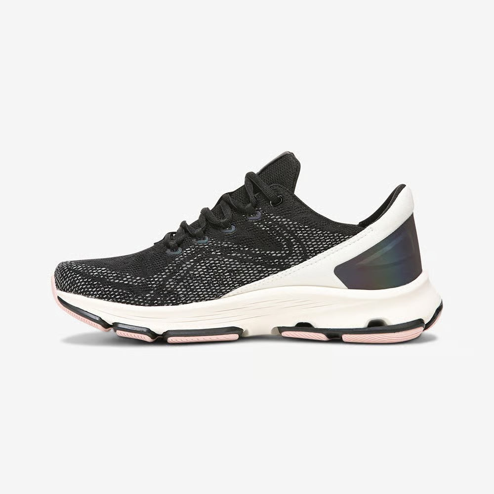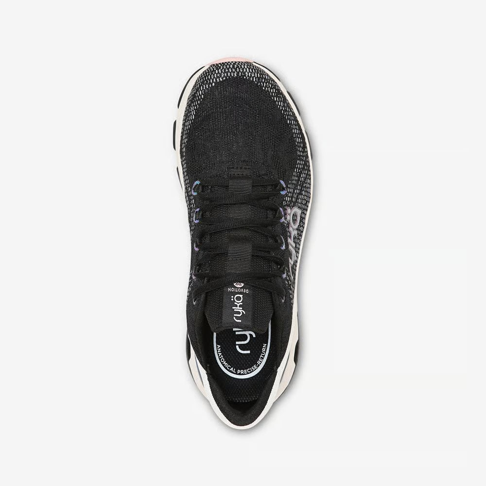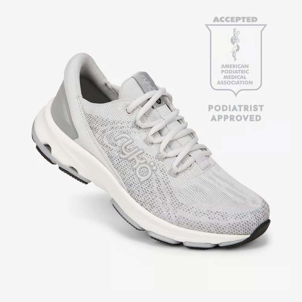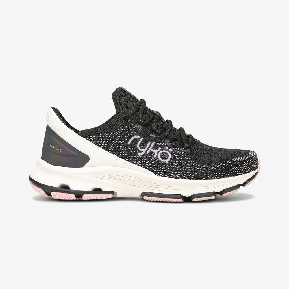 - RYKÄ Q TECH technologija: pritaikyta moters keturgalvio raumens Q kampui – siauresnis kulnas, platesnė pirštų zona ir kontūruota amortizacija stabilumui