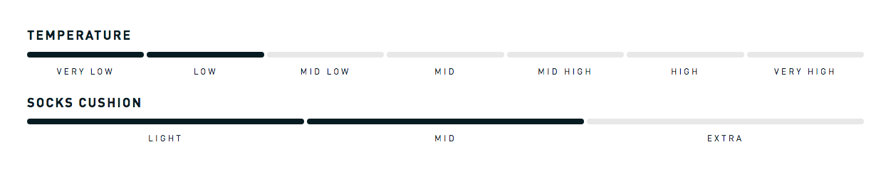 - ZEROCUFF - Skirtingai nuo klasikinių kojinių, kurios naudoja dvigubą rankogalio konstrukciją, kad užtikrintų tvirtą laikymą, revoliucinė ZEROCUFF technologija naudoja specialią konstrukciją, leidžiančią kojinei idealiai priglusti, nesukeliant pėdos suspaudimo. Pašalinus bet kokius apribojimus, pagerėja kraujotaka, kas padidina našumą. Tuo pačiu metu padidėjusi kraujotaka padeda išlaikyti pėdos temperatūrą vienodą ir apsaugo nuo patinimo net ir po ilgų intensyvių treniruočių.