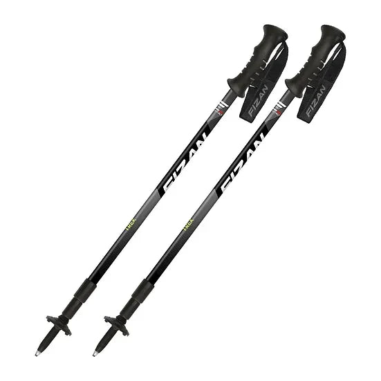 Fizan Trek trekinga nūjas izgatavotas no alumīnija ar trim sekcijām (18/16/14 mm) pagarināmas no 63 līdz 140 cm. Aprīkots ar Flexy bloķēšanas sistēmu.