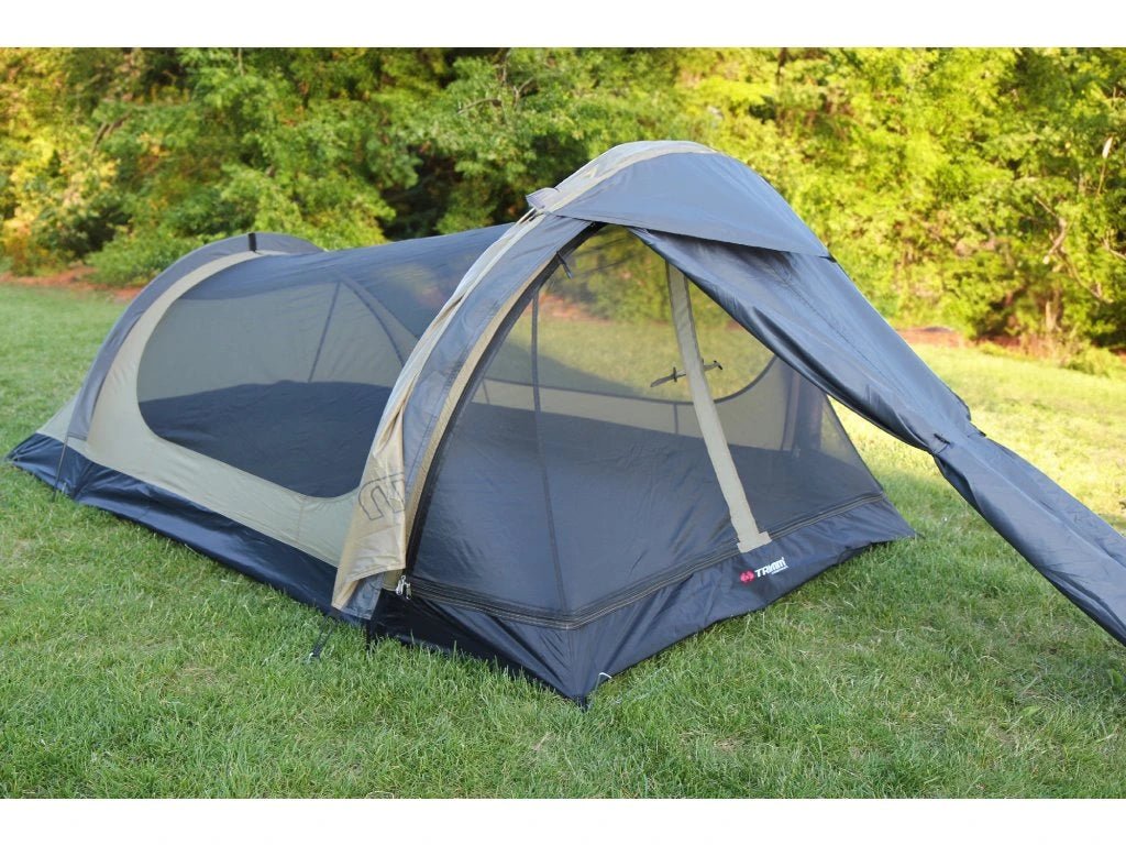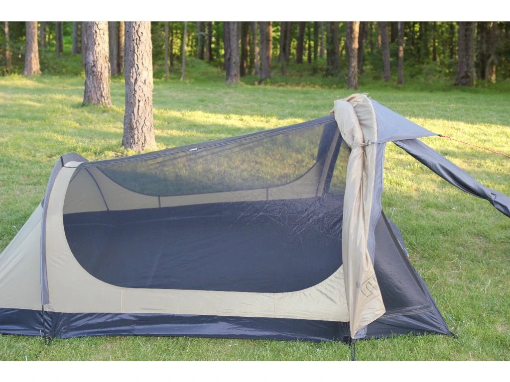 Plaša tuneļveida telts divām personām. Vienkārša konstrukcija un viegla uzstādīšana. Telts ārējo daļu var atrullēt, kas ir īpaši noderīgi karstās vasaras dienās.