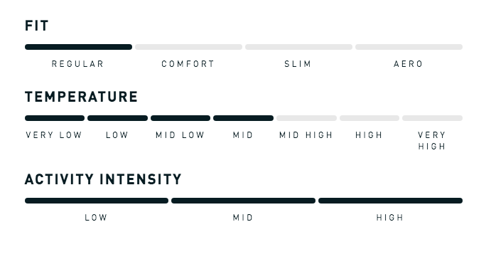 - COOLVENT: novirzītā iekšējā virsma veicina pastāvīgu gaisa plūsmu. Tas ātri uzsūc sviedrus, atvēsina ķermeni aktivitātes laikā un saglabā ādu sausu.